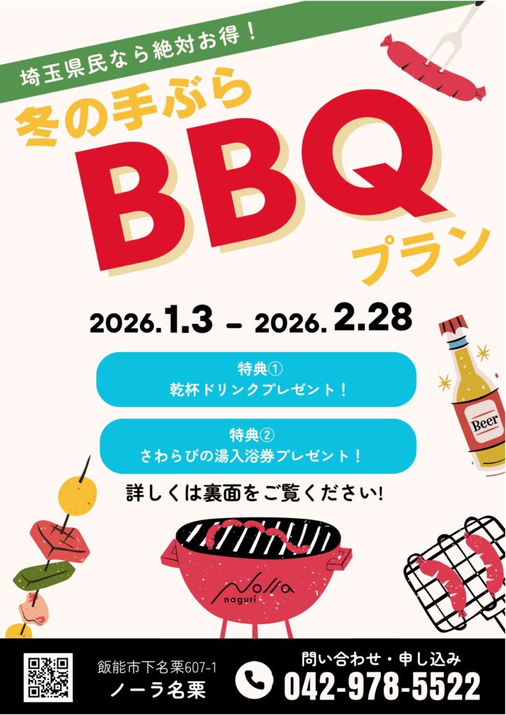 期間限定キャンペーンとなりますので、この機会にぜひノーラ名栗にお越しください。